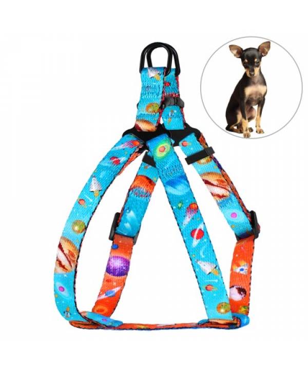 Шлея для собак 'Urban' BronzeDog Космос (обхват грудної клітини 24-30см, ширина-10мм) блакитний