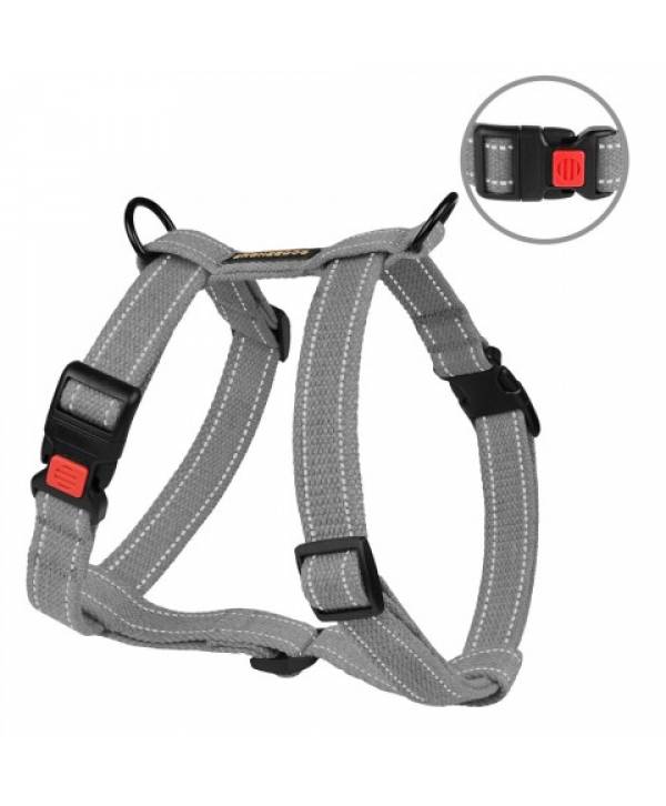 Шлея для собак ТМ BronzeDog 'Брезент Н-подібна' (25мм, розмір L) св.сірий