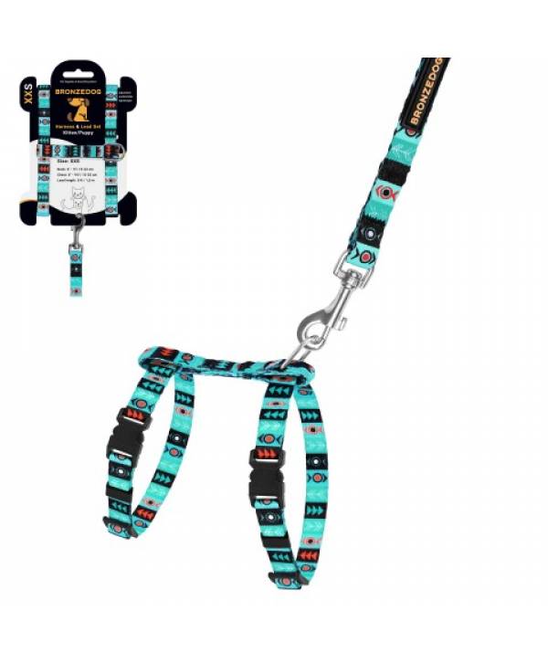 Шлея з поводом для котів та дрібних собак ТМ 'BronzeDog' з нашивкою розмір XS, орнамент інки