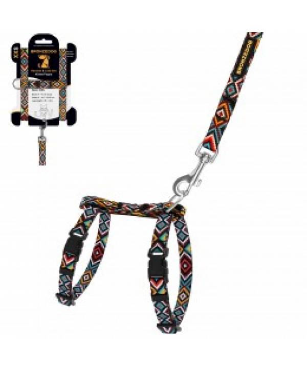 Шлея з поводом для котів та дрібних собак ТМ'BronzeDog' з нашивкою розмір 2ХS,гуцульський ментол