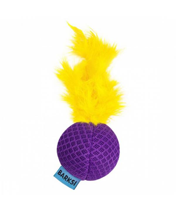 Іграшка для котів ТМ Barksi з дзвіночком та з пір'ям М'яч фіолетовий