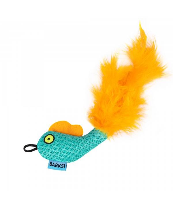 Іграшка для котів ТМ Barksi з дзвіночком та з пір'ям Рибка ментолова