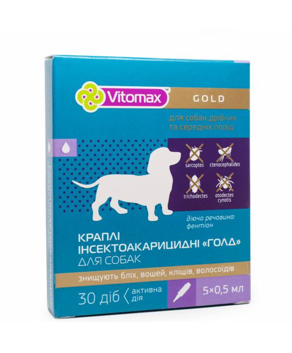 Краплі інсектоакарицидні 'Голд' на холку для собак 0,5мл