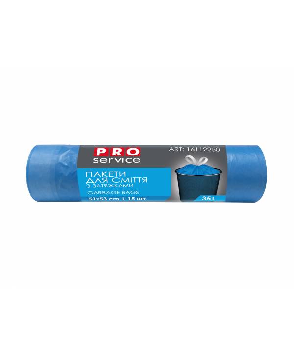 16112250 PRO Пакет для смiття п/е з затяжкою 51*53 синій ХД 35л/15шт (30шт/ящ)