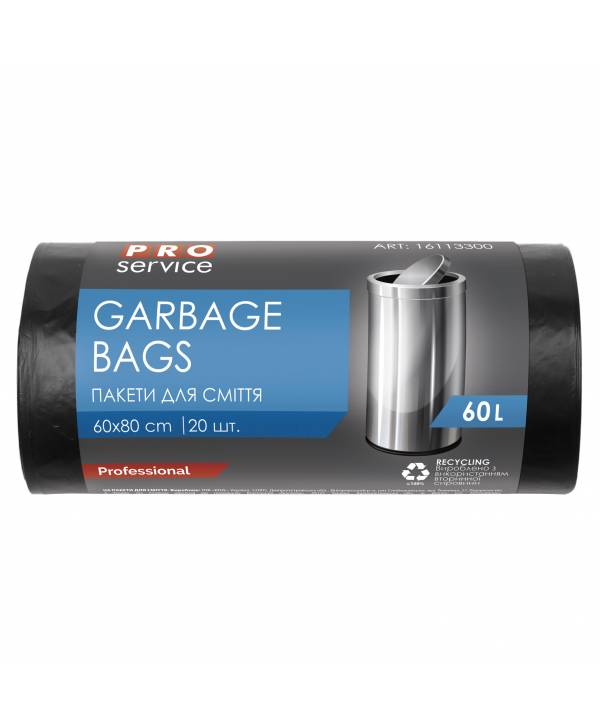 16113300 PRO Пакет для смiття п/е 60*80 чорн ЛД 60л/20шт.міцні 88006