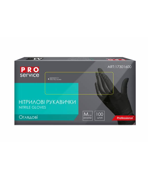 17301602 PRO Рукавички нітрилові оглядові нестерильні неприпудрені, чорні, 100шт/уп, M (10уп/ящ)