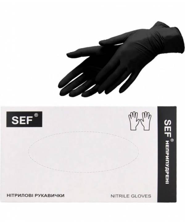 SEF Рукавички нітрилові оглядові нестерильні неприпудрені ЧОРНІ (200шт), розмір L