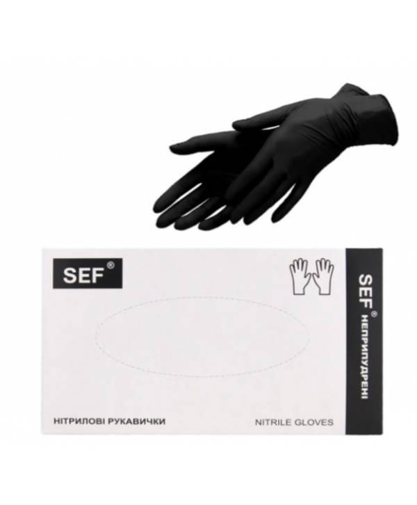 SEF Рукавички нітрилові оглядові нестерильні неприпудрені ЧОРНІ (3,5гр.), розмір L