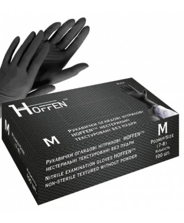 Рукавички оглядові нітрилові HOFFEN black нестерильні текстуровані без пудри р.M