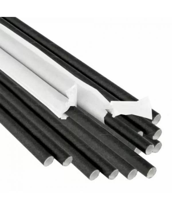 Паперова трубочка для напоїв чорна 100 шт в індивідуальному пакуванні.